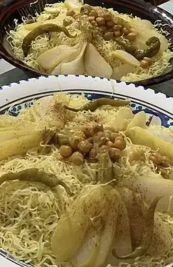 - Auzias, Dominique; Labourdette, Jean-Paul (9 de mayo de 2019). ALGER 2019/2020 Petit Futé (en francés). Petit Futé. ISBN 978-2-305-00954-4. - ↑ Rosenberger, Bernard (1989). «Les pâtes dans le monde musulman» [Pasta in the Muslim world]. Médiévales (en francés) 8 (16): 77-98. doi:10.3406/medi.1989.1138.