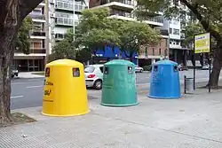 Para la separación en origen doméstico[5] se usan contenedores de distintos colores ubicados en entornos urbanos o rurales: