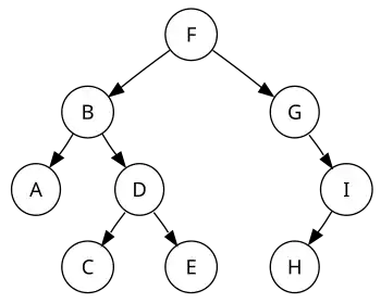 - Secuencia de recorrido de inorden: A, B, C, D, E, F, G, H, I (izquierda, raíz, derecha); note cómo esto produce una secuencia ordenada