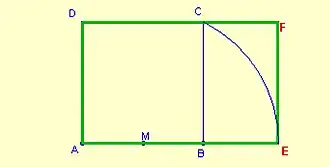 Construcción partiendo del cuadrado: de forma similar al rectángulo áureo, se traza con centro en el punto A, una circunferencia que pase por el vértice opuesto C.