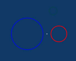 Una tercera generalización considera circunferencias tangentes, en lugar de rectas tangentes. Una recta tangente se puede considerar como una circunferencia tangente de radio infinito. En particular, las rectas tangentes externas a dos circunferencias son casos límite de una familia de circunferencias que son tangentes interna o externamente a ambas circunferencias, mientras que las rectas tangentes internas son casos limitantes de una familia de circunferencias que son tangentes internamente a una y tangentes externamente a la otra de las dos circunferencias.[5]