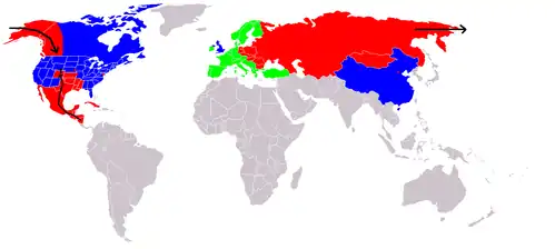 Azul: Los Estados Unidos y sus aliados de Canadá, Reino Unido y la República Popular de China.