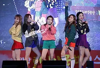 ![]() Red Velvet en junio de 2024. De izquierda a derecha: Joy, Yeri, Irene, Seulgi y Wendy | ||