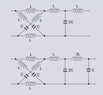- ↑ «correctamente terminada». Por lo general, esto significa terminación con la impedancia nominal del sistema que, a su vez, suele elegirse para igualar la impedancia característica nominal de las líneas de transmisión del sistema. Esta es la impedancia a la que se espera que se conecte el circuito en funcionamiento y la adaptación de impedancias tiene cierta importancia en las telecomunicaciones. En algunos contextos de diseño se considera una impedancia más teórica, como la impedancia de imagen