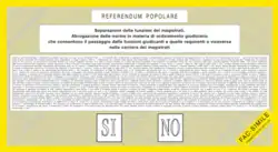 - ↑ Milella, Liliana (17 de febrero de 2022). «Referendum giustizia, passano 5 quesiti su 6. Bocciate la responsabilità civile dei magistrati e la cannabis legale». La Repubblica. Consultado el 1 de abril de 2022.