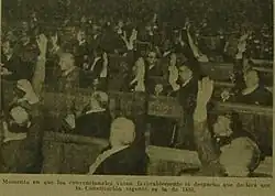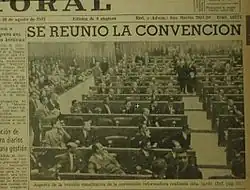 - ↑ «Grave crisis se creó en la Convención Nacional. El retiro de diputados del bloque de centro impide la formación del quórum». El Litoral. Santa Fe. 26 de octubre de 1957.