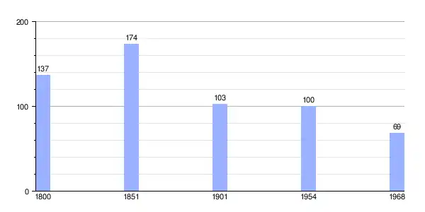 | Gráfica de evolución demográfica de Refranche entre 1800 y 1968 |