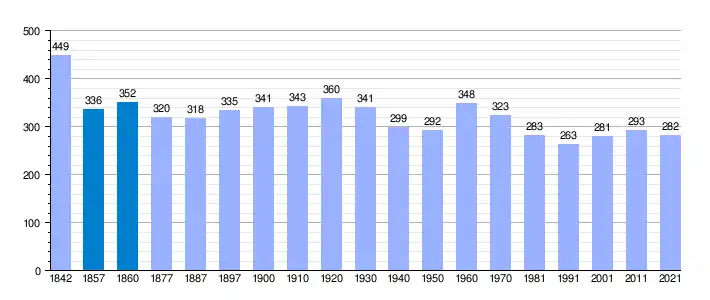 | Gráfica de evolución demográfica de Regencos[2] entre 1842 y 2021 |
