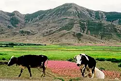 ↑Heinrich Harrer, op. cit. : « The peasants still used wooden ploughs with an iron share. These were drawn by dzos (The dzo is a cross between an ox and a yak, and is a very good draught animal ».