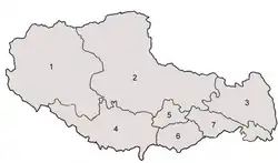 La lengua mayoritaria es el tibetano. En la región se encuentra la montaña más alta del mundo, el monte Everest (8848 m s. n. m.), haciendo frontera con Nepal[8] y en la parte suroeste del territorio chino.[9]