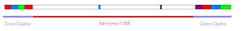 En humanos, las regiones intergénicas comprenden alrededor del 50% del genoma, mientras que este número es mucho menor en bacterias (15%) y levaduras (30%).[12]