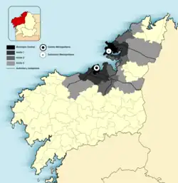 La región urbana de La Coruña - Ferrol es una conurbación del norte de Galicia compuesta por 32 municipios en torno al golfo Ártabro y formada por las áreas metropolitanas de La Coruña y Ferrol. Región fue creada con tal nombre por el decreto 19/2011, de 10 de febrero, por el que se aprobaron definitivamente las directrices de ordenación del territorio.[1][2][3]