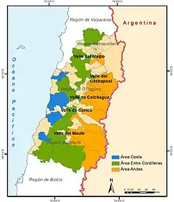 - ↑ Ministerio de Agricultura (26 de mayo de 1995). «Decreto 464: Establece zonificación vitícola y fija normas para su utilización». Biblioteca del Congreso Nacional de Chile. Consultado el 9 de abril de 2011.