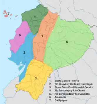 Al ser el puerto natural del litoral su conexión con el core de la sierra, zona 1, fue importante la construcción del Camino Real. Este sin embargo tenía deficiencias puesto que en la época invernal no podía ser utilizado debido a las inundaciones. Por esta razón siempre se consideró como alternativa crear un puerto en la zona 5, con el Río Esmeraldas, lo que creaba conflicto y oposición de Guayaquil, no solo a la creación del puerto sino al Camino a Esmeraldas. Esta dinámica persiste hasta la actualidad y es la base de las diferencias regionales entre Quito y Guayaquil. Al ser el puerto natural del litoral su conexión con el core de la sierra, zona 1, fue importante la construcción del Camino Real. Este sin embargo tenía deficiencias puesto que en la época invernal no podía ser utilizado debido a las inundaciones. Por esta razón siempre se consideró como alternativa crear un puerto en la zona 5, con el Río Esmeraldas, lo que creaba conflicto y oposición de Guayaquil, no solo a la creación del puerto sino al Camino a Esmeraldas. Esta dinámica persiste hasta la actualidad y es la base de las diferencias regionales entre Quito y Guayaquil. Al tener poca población indígena esta región desarrolló una cultura montuvia rápidamente. Desde la colonia existían los elementos característicos de esta como el amorfino o los bailes de salón y bailes de candil. Esta cultura se desarrolló alrededor de la actividad agrícola, los astilleros y la cultura porteña de la ciudad de Guayaquil. En el siglo XX se consolidó la cultura montuvia como los campesinos de Ecuador. Además a través de la ganadería una cultura vaquera, similar a los llaneros de Colombia y Venezuela. Alrededor de los montuvios existe una gastronomía, literatura, música y cultura popular que es exclusiva de Ecuador, ya que los andes y la región 5, comparten cultura con Perú y Colombia respectivamente.
