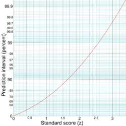 El intervalo de predicción para cualquier unidad tipificada z corresponde numéricamente a (1 − (1 − Φμ,σ2 (z)) · 2).