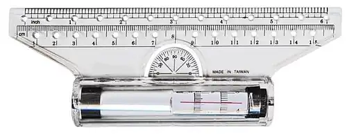 Una regla giratoria es una regla que contiene un cilindro muy similar a un rodillo en su interior, lo que le permite "rodar" a lo largo de una hoja de papel u otra superficie donde se utilice. Una regla giratoria puede dibujar líneas rectas y paralelas y también incluye otras herramientas, que le permiten hacer el trabajo de un transportador y una brújula.[14][15]
