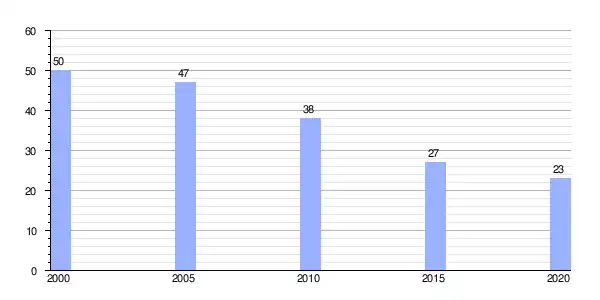 | Gráfica de evolución demográfica de Regueiro entre 2000 y 2020 |