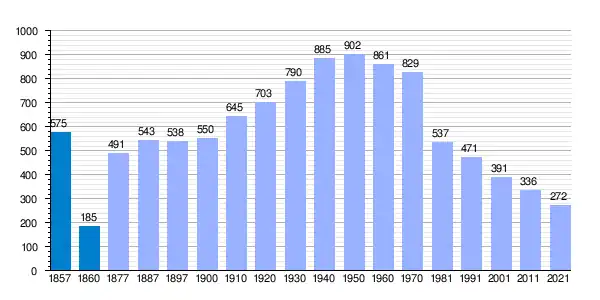 | Gráfica de evolución demográfica de Regueras de Arriba[7] entre 1857 y 2021 |