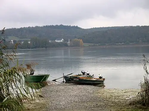 Barcas sobre la orilla norte de Reichenau en otoño de 2009.