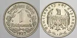 Las primeras monedas del Reichsmark, desde el mandato de Adolf Hitler, presentan unas variantes en sus valores, especialmente en el de 50 Reichspfennig. A continuación se muestra una tabla con los valores de las primeras monedas: