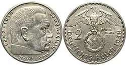 Cuando la Alemania Nazi entró en guerra, el Reichsbank cambió la composición de las monedas circulantes. También sacó, en 1940, de la circulación las monedas de 2 Reichspfennig, y las de 1, y 5 Reichsmark. Los valores vigentes hasta la finalización de la guerra fueron los siguientes: