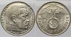 Los valores de 50 Reichspfennig y de 5 Reichsmark presentan variantes en sus diseños respecto a los mostrados anteriormente: