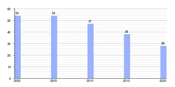 | Gráfica de evolución demográfica de Reigada (aldea) entre 2000 y 2020 |