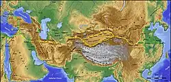 - ↑ Millward, James A. (2007). Eurasian Crossroads: Una historia de Xinjiang (ilustrada edición). Columbia University Press. p. 30. ISBN 978-0-231-13924-3.