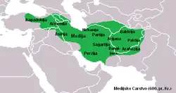 ![]() Mapa hipotético del reino medo en su máxima extensión | |||||||||||||||||||||||||||||||||
