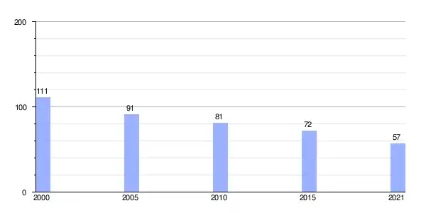 | Gráfica de evolución demográfica de Reiriz (parroquia) entre 2000 y 2021 |