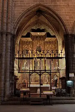Respecto a la catedral de Barcelona, fueron varias las obras rejeras que podemos encontrar. El cerramiento de la capilla de Santa Clara y Santa Catalina, fueron obra del maestro rejero Joan Vilalta hacia 1450 por encargo de la esposa de Arquimbau de Foix, recibiendo como pago la cantidad de 335 florines, así mismo queda documentado que también fueron abonados 55 florines a Joan Cabrera, pintor que se encargó de embellecer con dorados parte de la estructura.[5]