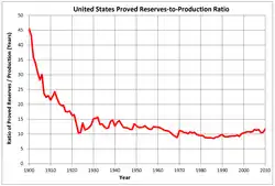 Una interpretación simplista de la relación ha llevado a muchas predicciones falsas de un inminente "quedarse sin petróleo" desde los primeros años de la industria petrolera en el siglo XIX. Esto ha sido especialmente cierto en los Estados Unidos, donde la relación entre reservas probadas y producción ha estado entre 8 y 17 años desde 1920. Muchos han interpretado erróneamente el resultado como el número de años antes de que se agote el suministro de petróleo. Dichos análisis no tienen en cuenta el crecimiento futuro de las reservas.[2]