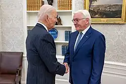 Hoy en día, Estados Unidos es uno de los aliados y socios más cercanos de Alemania fuera de la Unión Europea.[6] La gente de los dos países se ve como aliados confiables, pero no están de acuerdo en algunas cuestiones políticas clave. Los estadounidenses quieren que Alemania desempeñe un papel militar más activo, pero los alemanes no están de acuerdo.[7]