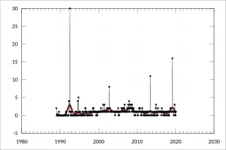 - ↑ Australian Bureau of Statistics, 2012, International Trade in Goods and Services, Australia, 'Table 14a. Merchandise Exports, Country and Country Groups, FOB Value', time series spreadsheet, cat. no. 5368.0, viewed 9 January 2013