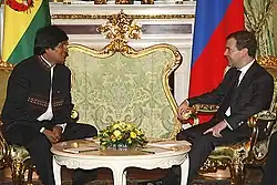 - ↑ «Putin confía en ampliar relaciones con Bolivia en minería, energía y uso pacífico de energía nuclear». la-razón.com. 18 de mayo de 2021. Consultado el 22 de mayo de 2021.
