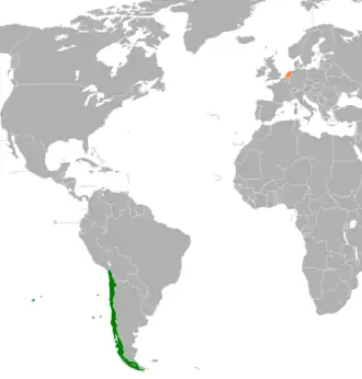 - ↑ Ministerio de Relaciones Exteriores de Chile. «Relaciones bilaterales / Bilaterale betrekkingen». Embajada de Chile en Países Bajos. Consultado el 30 de julio de 2017.