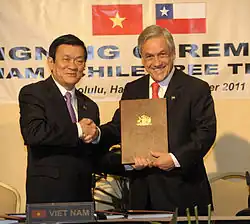 - ↑ a b Dirección General de Relaciones Económicas Internacionales (4 de febrero de 2014). «Entra en vigencia el Tratado de Libre Comercio entre Chile y Vietnam». Archivado desde el original el 31 de marzo de 2014. Consultado el 13 de julio de 2017.