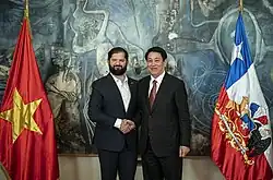 - ↑ «Presidente de la República, Gabriel Boric Font, se reúne con el Presidente de Vietnam, Luong Cuong, en el Palacio de La Moneda». prensa.presidencia.cl. 11 de noviembre de 2024. Consultado el 17 de diciembre de 2024.