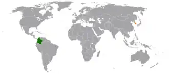 - ↑ «Misiones de Colombia en el Exterior: Corea». Colombia, Ministry of Foreign Affairs. Archivado desde el original el 14 de enero de 2013. Consultado el 23 de diciembre de 2012.