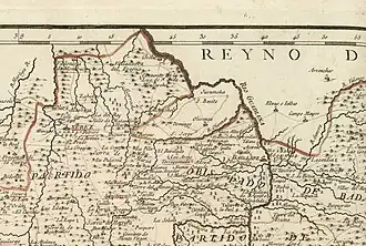 Situación de Olivenza y del reino de Portugal respecto a la provincia de Extremadura en 1766.