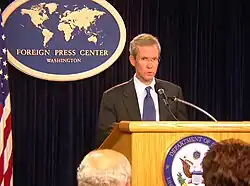 A pesar de todo esto, los Estados Unidos todavía no habían reconocido formalmente la autoridad legítima de Marruecos sobre el Sahara Occidental ni la soberanía del Sahara Occidental.[54] Sin embargo, el Informe 2008 de CRS señaló que en 2007 los EE. U Subsecretario de Estado, Nicholas Burns respaldó el plan de autonomía de Marruecos de 2007 como "serio y creíble".[54]