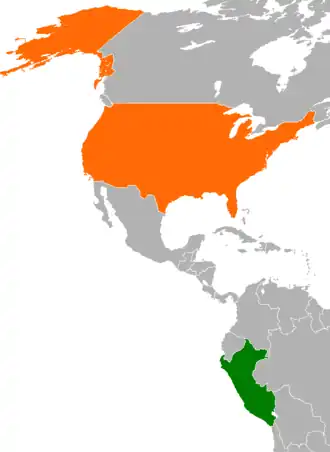 - ↑ a b Ministerio de Relaciones Exteriores del Perú (ed.). «Relaciones Bilaterales de Perú y Estados Unidos». Consultado el 19 de mayo de 2019.