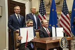 - ↑ «Joint Statement of the United States and the European Union on a Tariff Agreement». European Commission. European Commission. 21 de agosto de 2020. Archivado desde el original el 25 de agosto de 2020. Consultado el 25 de agosto de 2020.