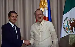 El presidente mexicano Enrique Peña Nieto realizó una visita a las Filipinas el 17 de noviembre de 2015 al margen de la Reunión de Líderes Económicos del Foro de Cooperación Económica Asia-Pacífico en 2015 celebrado en Manila. Durante su visita, el presidente Peña Nieto y el presidente filipino Benigno Aquino III discutieron el refuerzo de las relaciones comerciales y fueron testigos de la firma de acuerdos bilaterales sobre la evitación de la doble tributación, la cooperación turística y la lucha contra el narcotráfico.[1]