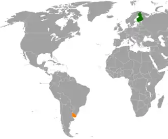 Finlandia está acreditado al Uruguay a través de su embajada en Buenos Aires, Argentina y mantiene un consulado honorario en Montevideo.[9]