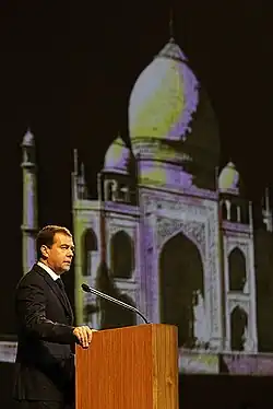 Las relaciones con la India siempre han sido y estoy seguro de que será una de las prioridades de política exterior más importantes de nuestro país. Nuestros lazos mutuos de amistad están llenos de simpatía, confianza y apertura. Y debemos decir francamente que nunca se vieron eclipsados por desacuerdos o conflictos. Este entendimiento - este es ciertamente el patrimonio común de nuestros pueblos. Es valorado y apreciado en nuestro país, en Rusia y en la India. Y estamos orgullosos de nuestras relaciones tan cercanas y tan estrechas entre nuestros países. - Dmitry Medvedev , sobre las relaciones con India[19]