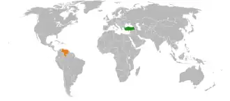 - ↑ «Türkiye - Venezuela Siyasi İlişkileri». mfa.gov.tr. T.C. Dışişleri Bakanlığı. 22 de agosto de 2018. Archivado desde el original el 22 de agosto de 2018. Consultado el 11 de enero de 2020.