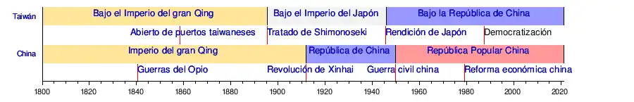 Los comunistas no conquistarán militarmente el enclave de Taiwán, por lo que el gobierno de Chiang Kai-Shek forma la actual República de China como continuidad de la República existente hasta entonces y no reconoce el estado surgido en la China continental (la República Popular China), por su parte los comunistas asumen que todo el territorio perteneciente a la antigua China es ahora la República Popular China, por lo que no reconocen a la actual República de China, a la que consideran una provincia más.