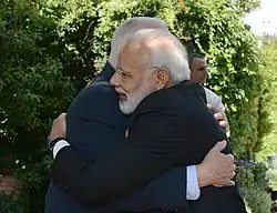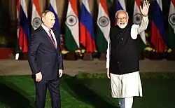 Aunque India sigue manteniendo una relación militar con Rusia,[29] Israel se ha convertido en el segundo socio militar de India,[26] mientras que India ha forjado una sólida asociación estratégica con Estados Unidos.[18][30] La política exterior de Narendra Modi indica un giro hacia la región asiática y, en términos más generales, hacia los acuerdos comerciales.