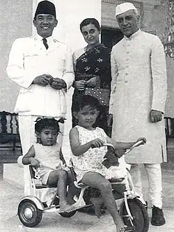 Incluso antes de la independencia, el gobierno colonial indio mantenía relaciones diplomáticas semiautónomas. Tenía colonias (como el Asentamiento de Adén), que enviaban y recibían misiones completas.[14] India fue miembro fundador tanto de la Sociedad de Naciones[15] como de las Naciones Unidas.[16] Tras independizarse del Reino Unido en 1947, India no tardó en unirse a la Mancomunidad de Naciones y apoyó firmemente los movimientos independentistas de otras colonias, como la Revolución Nacional Indonesia.[17] La partición y diversas disputas territoriales, sobre todo la de Cachemira, tensarían sus relaciones con Pakistán durante años. Durante la Guerra Fría, India adoptó una política exterior de no alinearse con ningún bloque de grandes potencias. Sin embargo, India estrechó lazos con la Unión Soviética y recibió de ella un amplio apoyo militar.